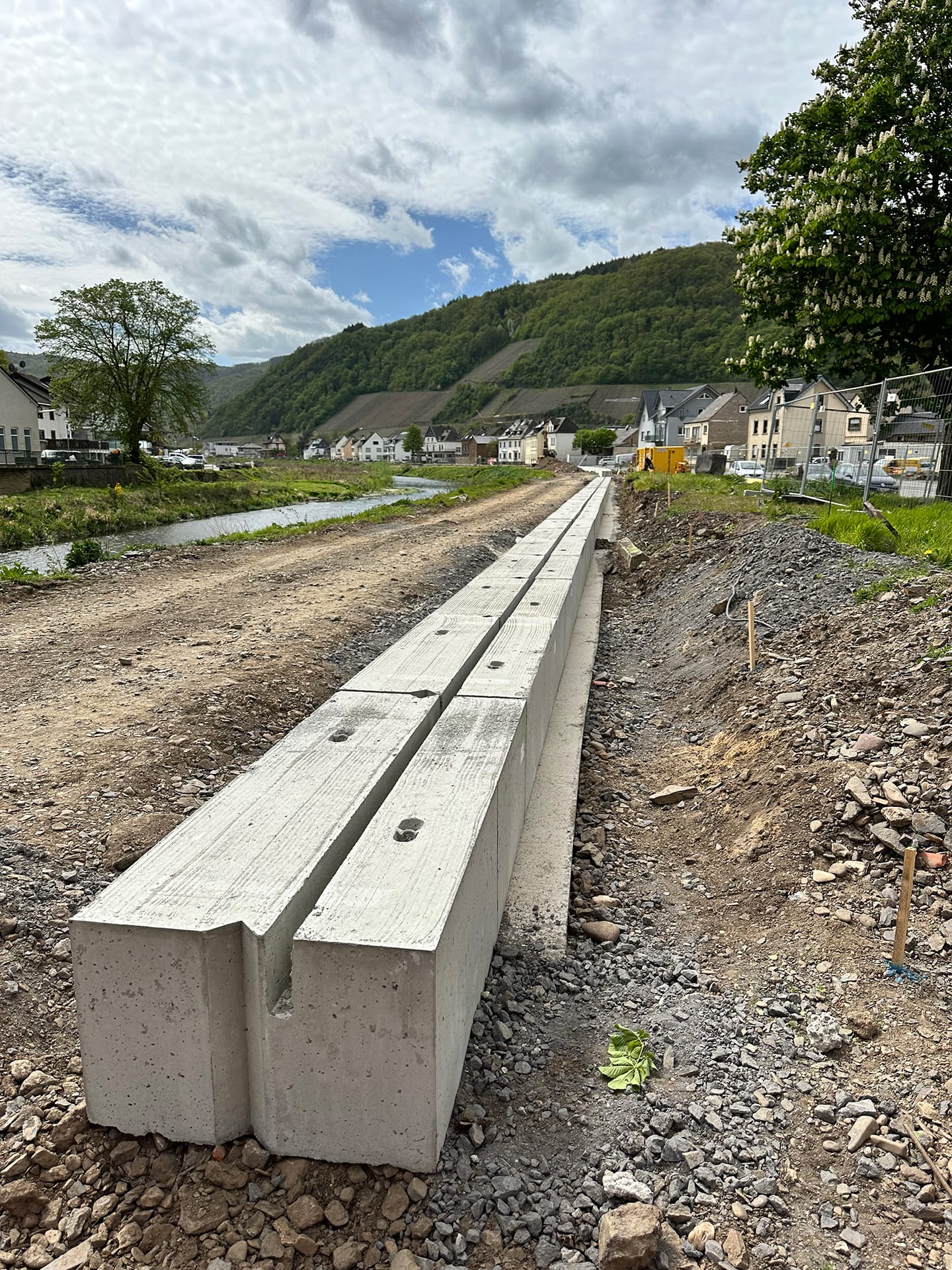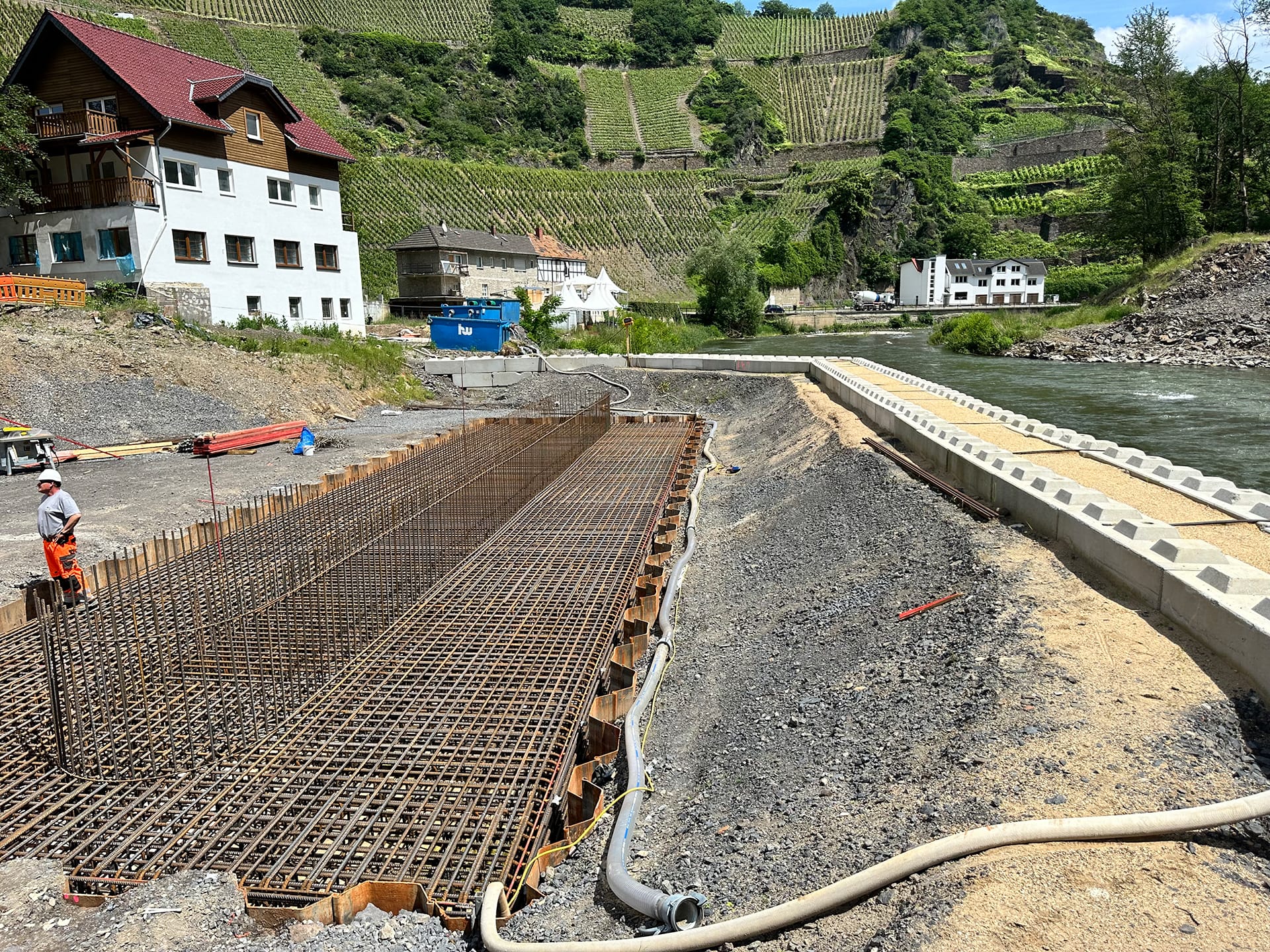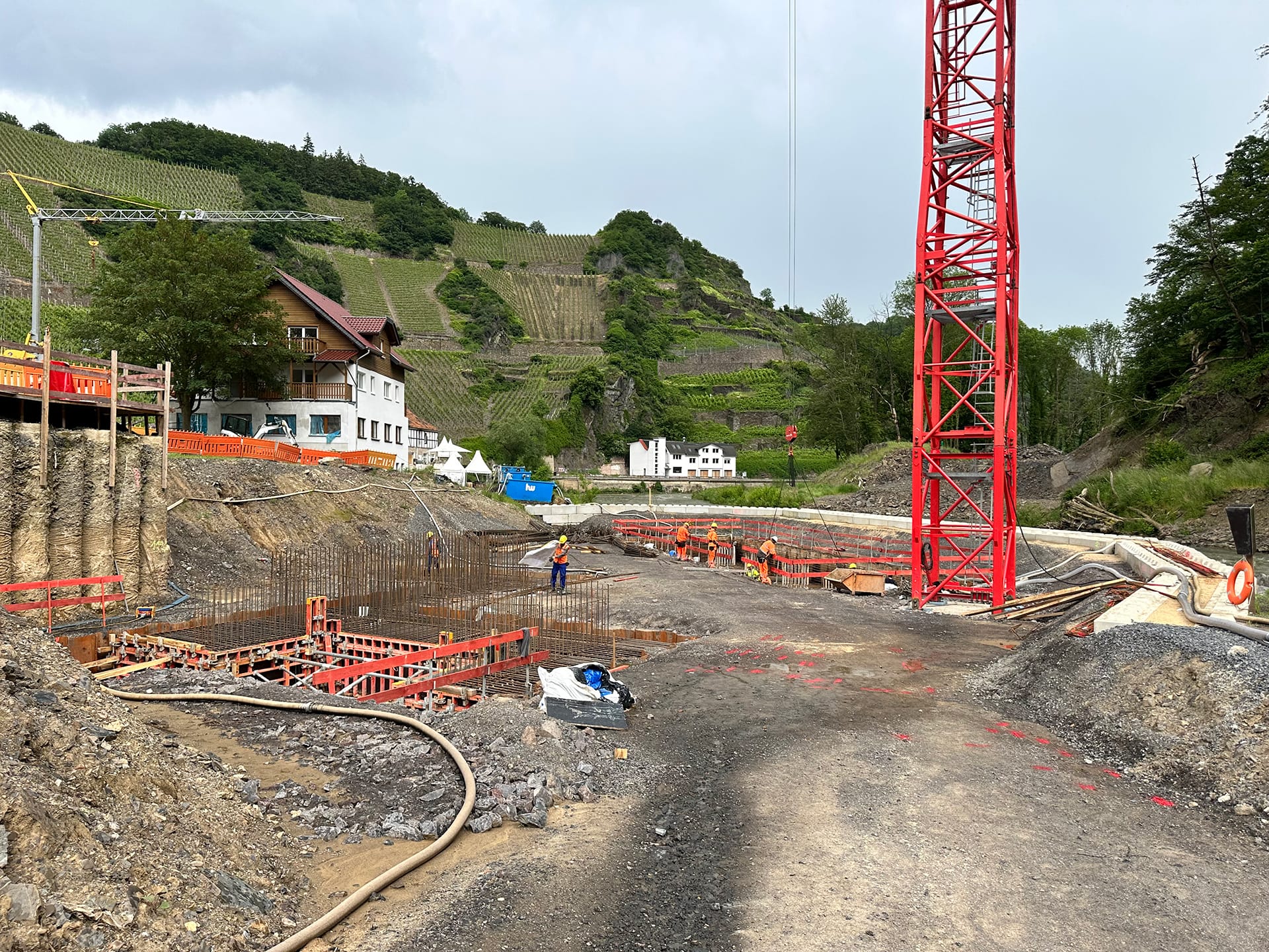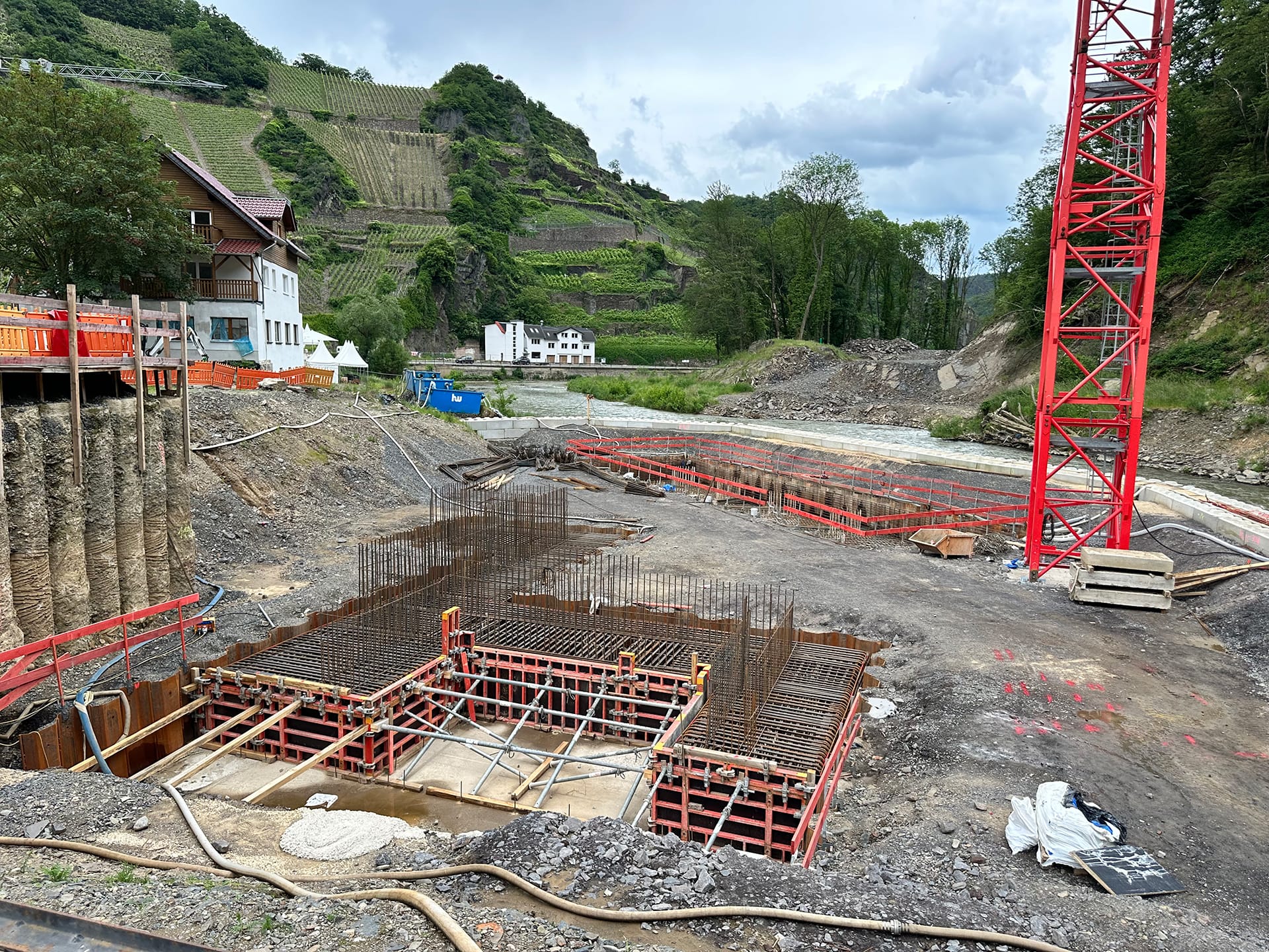 Beim Wiederaufbau der Ahrtalbahn sind wir für die Bauüberwachung mehrerer Baumaßnahmen im Bereich des Konstruktiven Ingenieurbaus verantwortlich. Hierzu zählen vorrangig die Erneuerung diverser Brückenbaumaßnahmen mit Gesamtlängen von teilweise über 90 m. Darüber hinaus der Neubau von diversen Durchlässen, Stützbauwerken, Dämmen und mehreren neu errichteten Bahnsteigen innerhalb von Haltepunkten oder Bahnhöfen. Für alle beschrieben Maßnahmen übernehmen wir die „Leitende Bauüberwachung“.