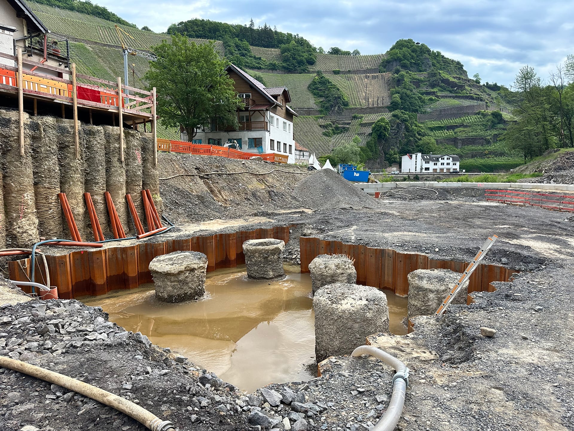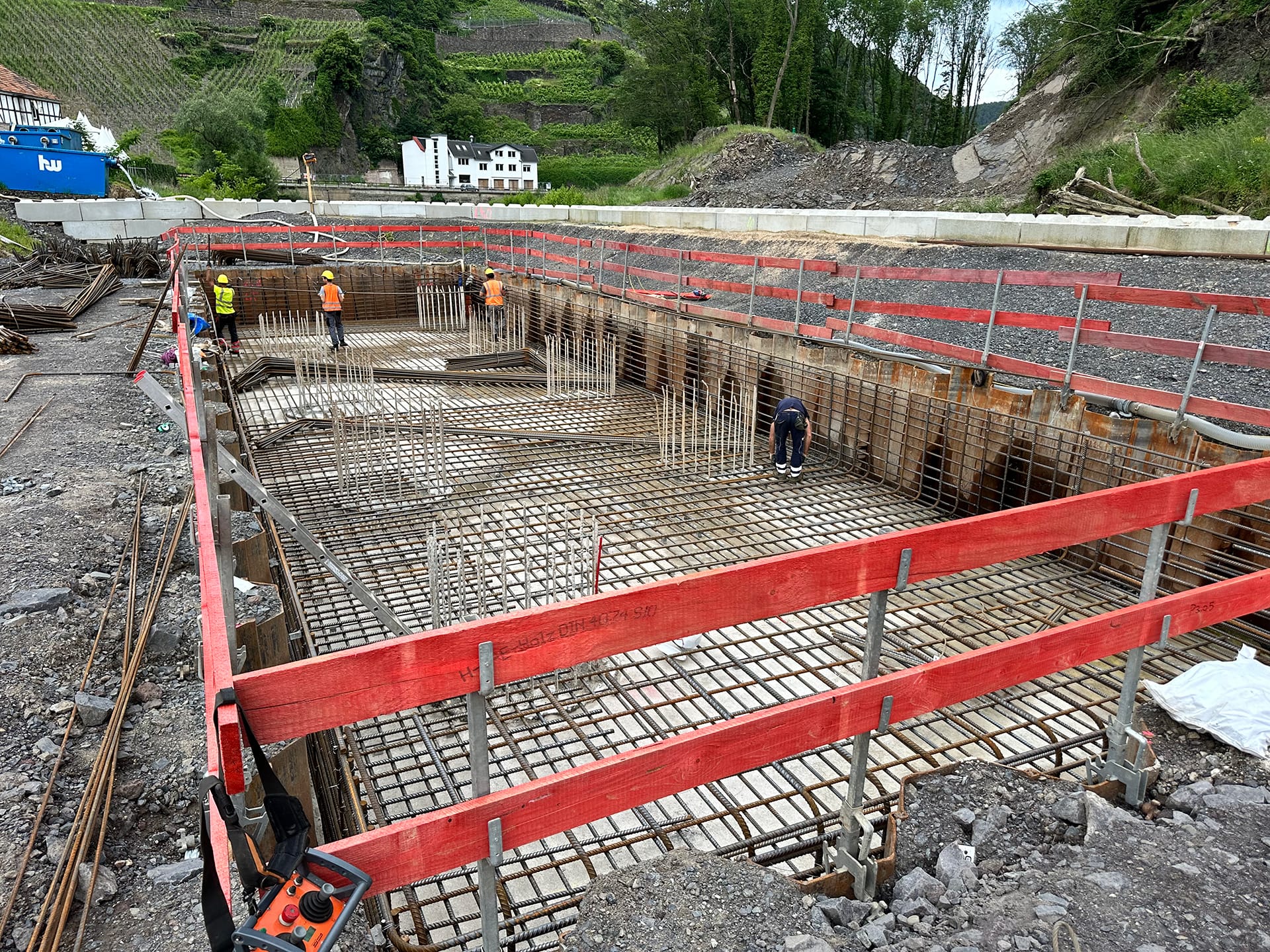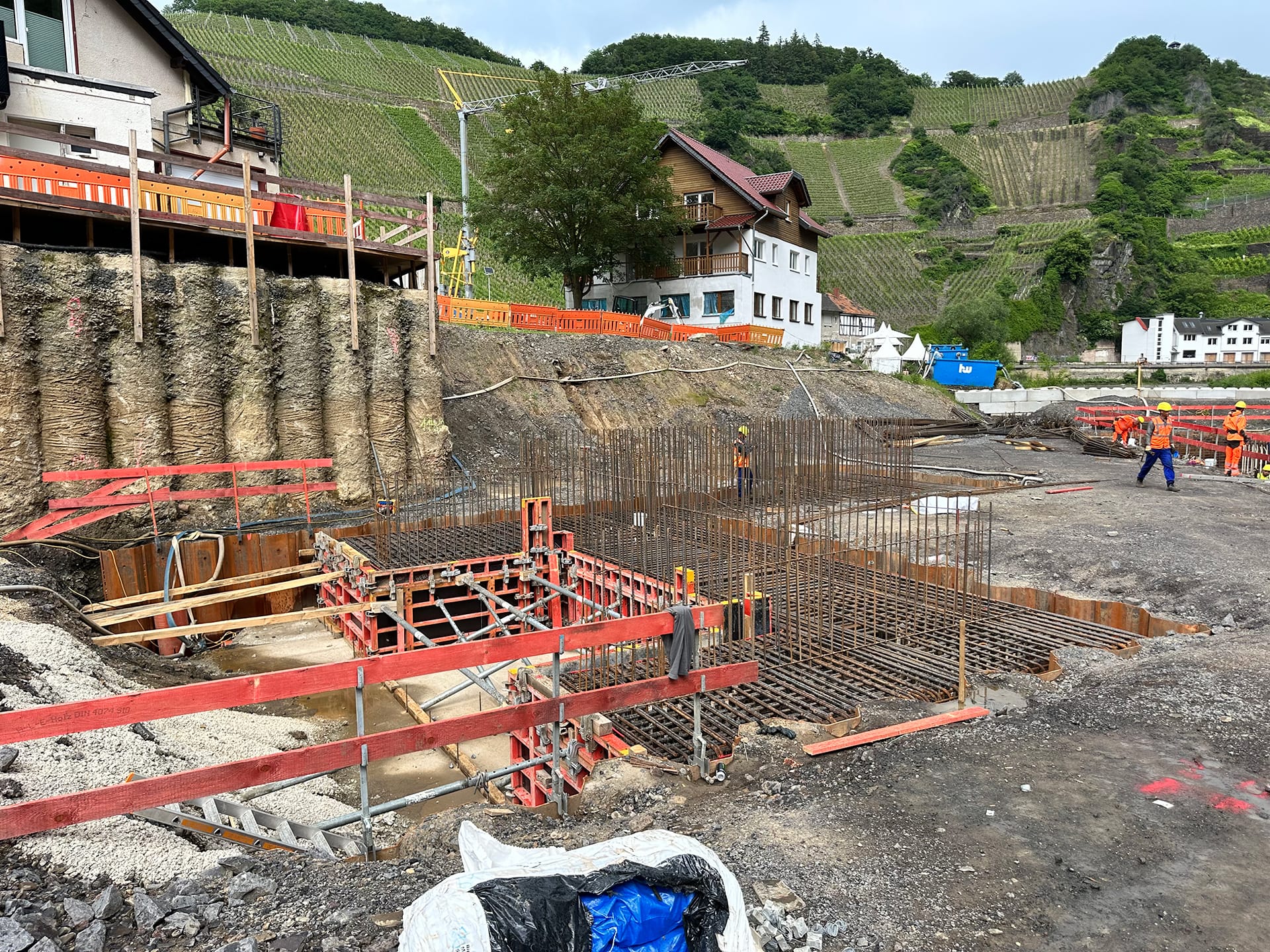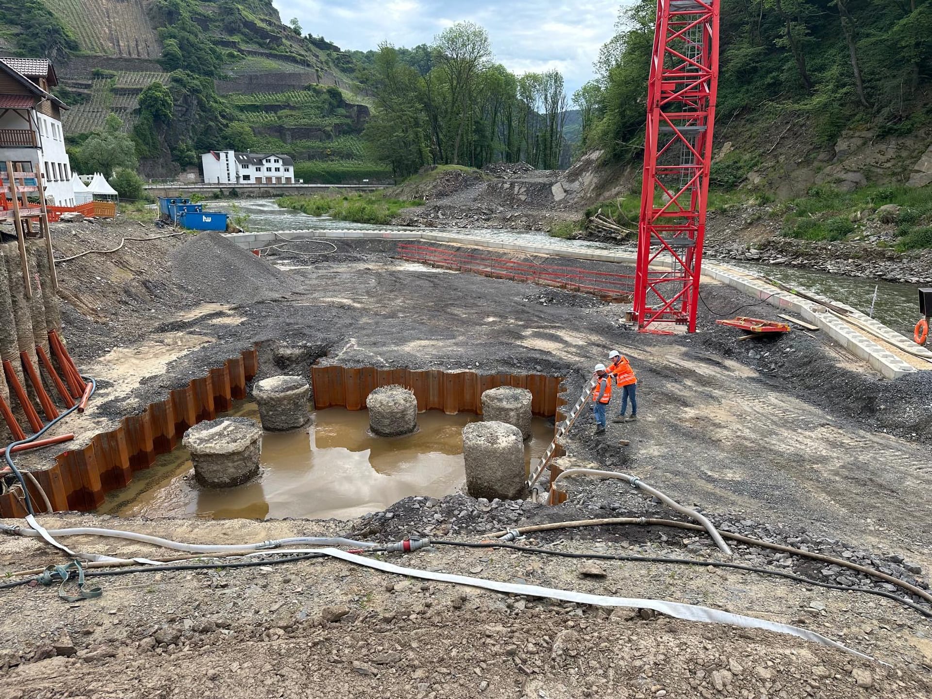 Beim Wiederaufbau der Ahrtalbahn sind wir für die Bauüberwachung mehrerer Baumaßnahmen im Bereich des Konstruktiven Ingenieurbaus verantwortlich. Hierzu zählen vorrangig die Erneuerung diverser Brückenbaumaßnahmen mit Gesamtlängen von teilweise über 90 m. Darüber hinaus der Neubau von diversen Durchlässen, Stützbauwerken, Dämmen und mehreren neu errichteten Bahnsteigen innerhalb von Haltepunkten oder Bahnhöfen. Für alle beschrieben Maßnahmen übernehmen wir die „Leitende Bauüberwachung“.