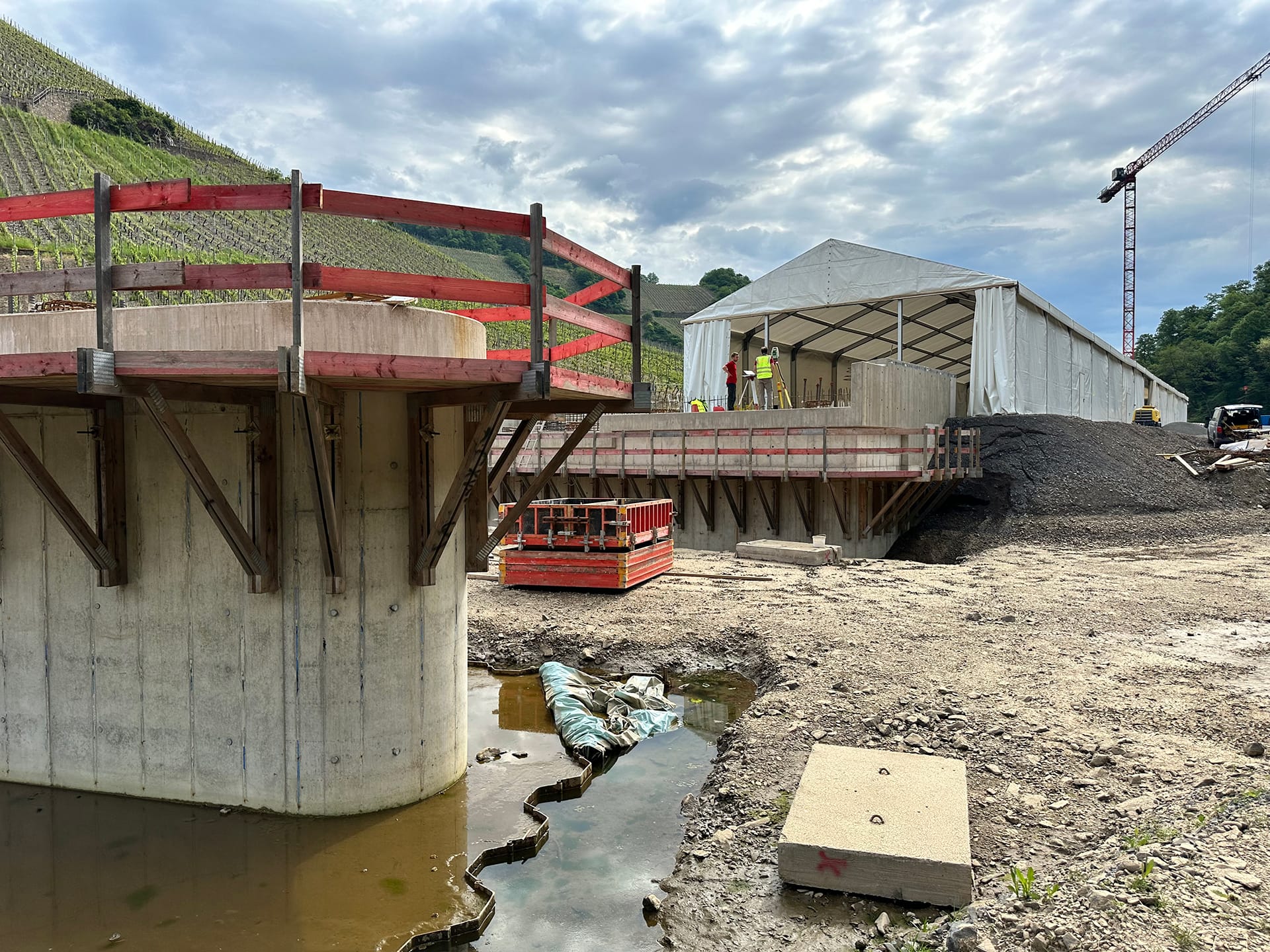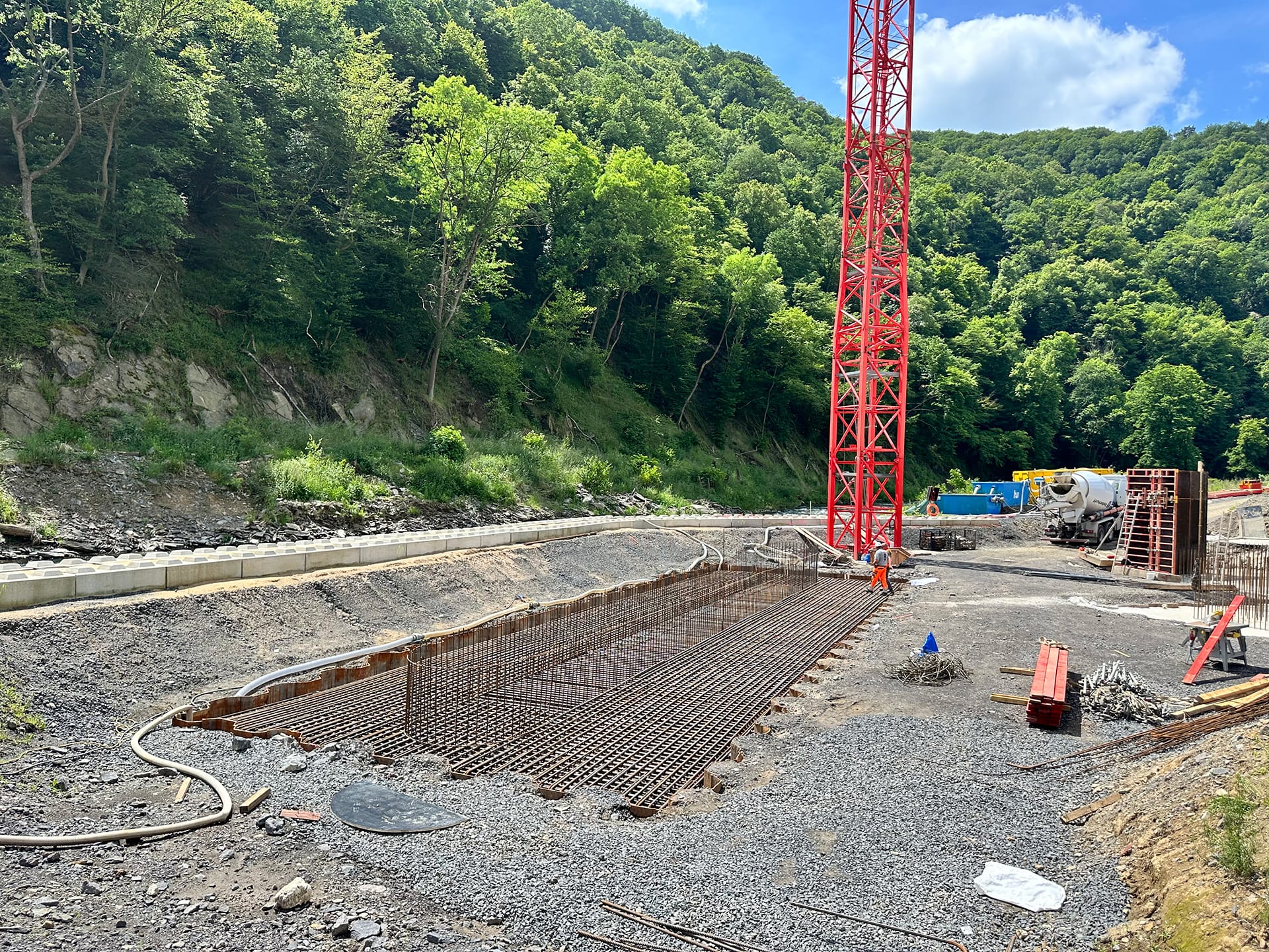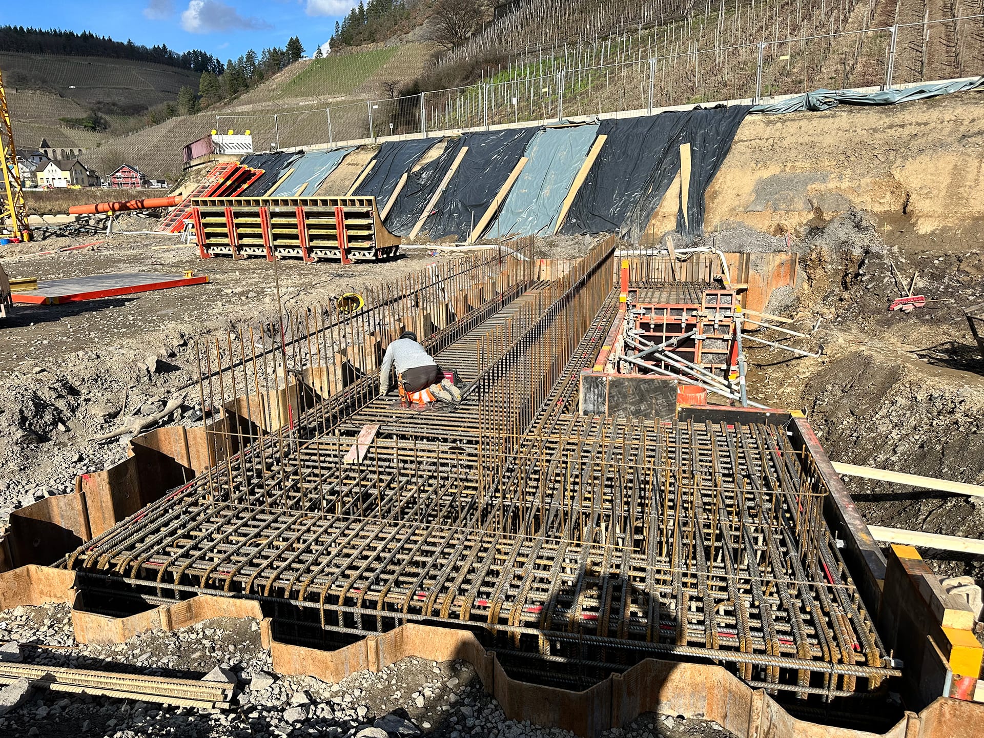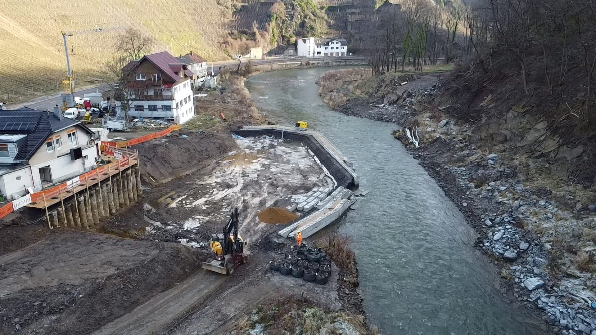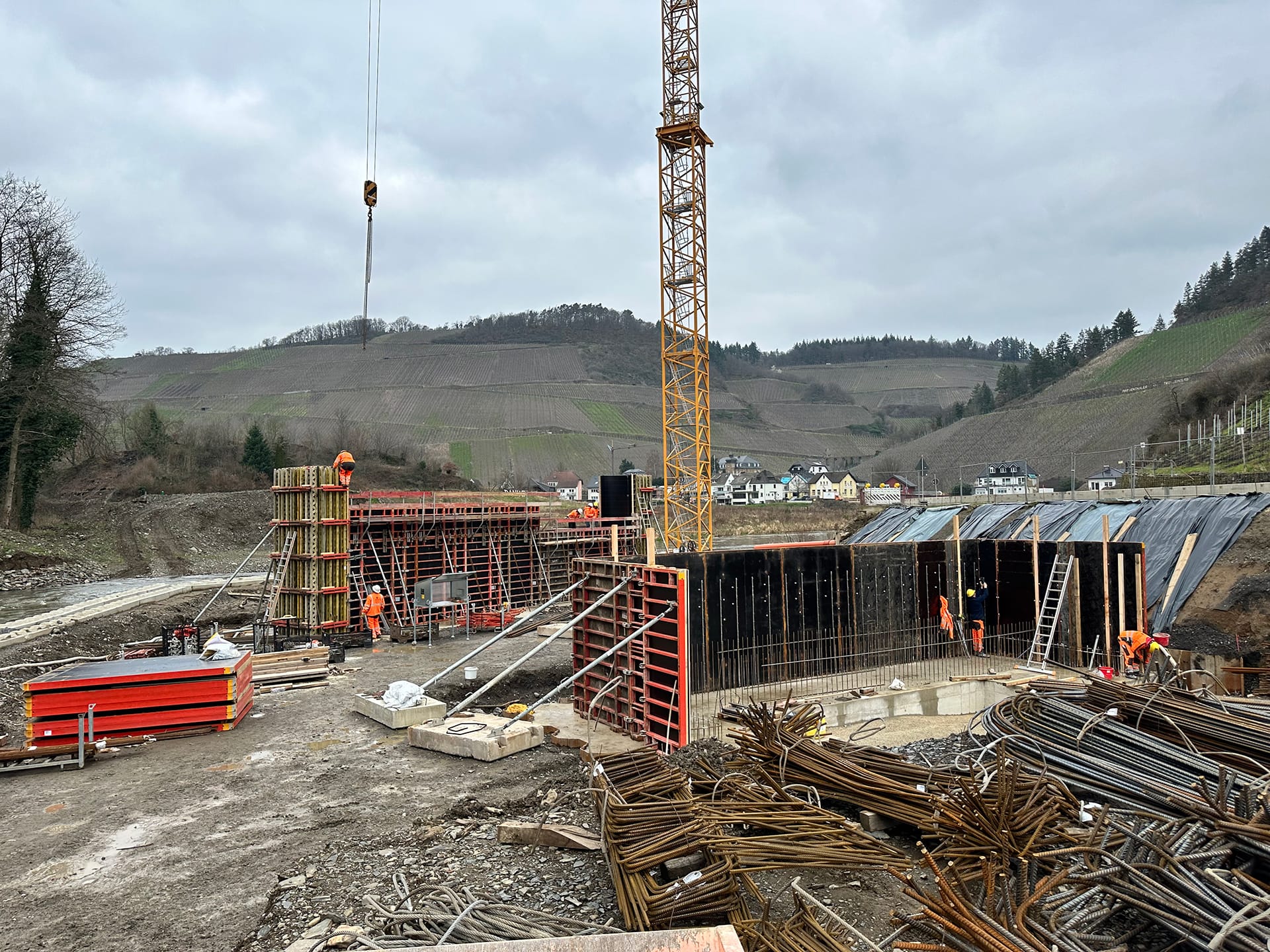 Beim Wiederaufbau der Ahrtalbahn sind wir für die Bauüberwachung mehrerer Baumaßnahmen im Bereich des Konstruktiven Ingenieurbaus verantwortlich. Hierzu zählen vorrangig die Erneuerung diverser Brückenbaumaßnahmen mit Gesamtlängen von teilweise über 90 m. Darüber hinaus der Neubau von diversen Durchlässen, Stützbauwerken, Dämmen und mehreren neu errichteten Bahnsteigen innerhalb von Haltepunkten oder Bahnhöfen. Für alle beschrieben Maßnahmen übernehmen wir die „Leitende Bauüberwachung“.