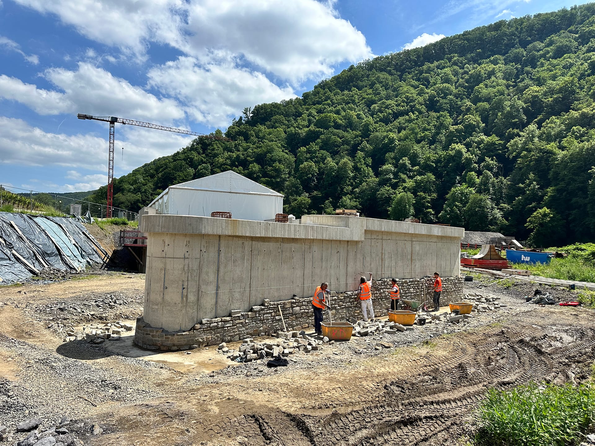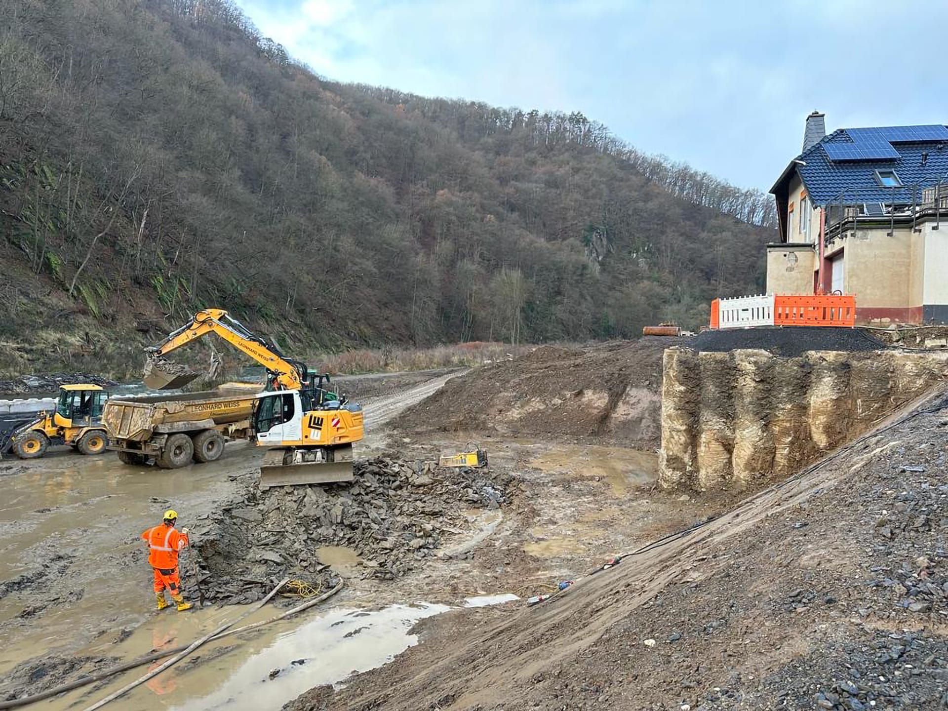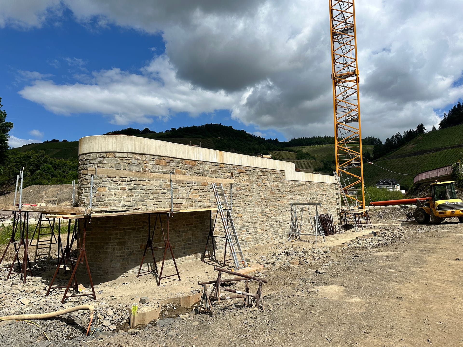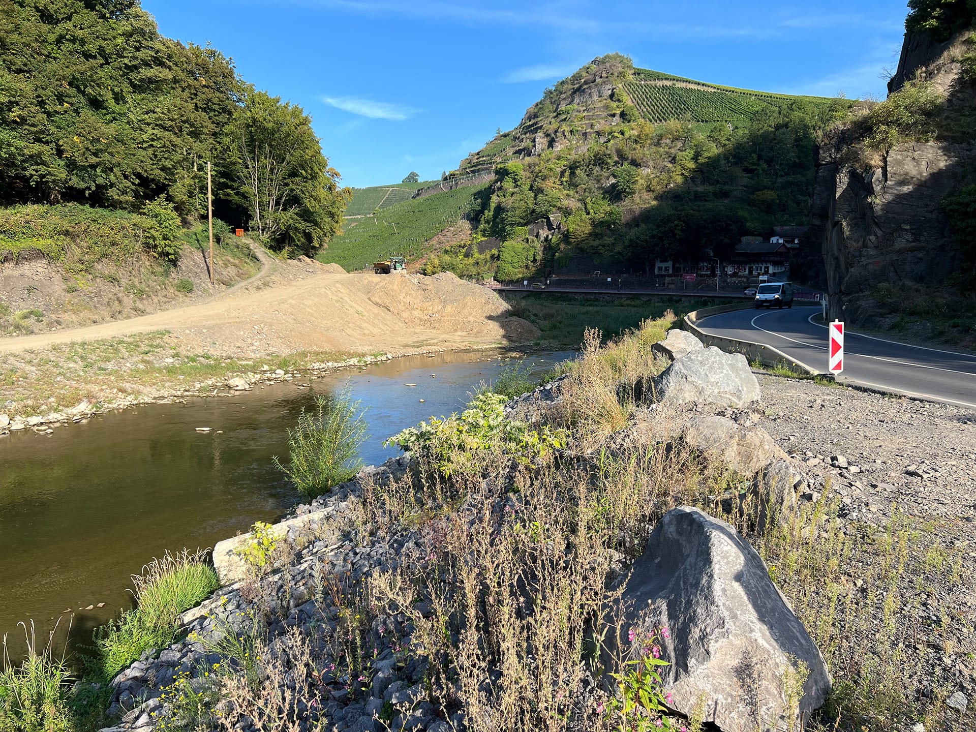 Beim Wiederaufbau der Ahrtalbahn sind wir für die Bauüberwachung mehrerer Baumaßnahmen im Bereich des Konstruktiven Ingenieurbaus verantwortlich. Hierzu zählen vorrangig die Erneuerung diverser Brückenbaumaßnahmen mit Gesamtlängen von teilweise über 90 m. Darüber hinaus der Neubau von diversen Durchlässen, Stützbauwerken, Dämmen und mehreren neu errichteten Bahnsteigen innerhalb von Haltepunkten oder Bahnhöfen. Für alle beschrieben Maßnahmen übernehmen wir die „Leitende Bauüberwachung“.